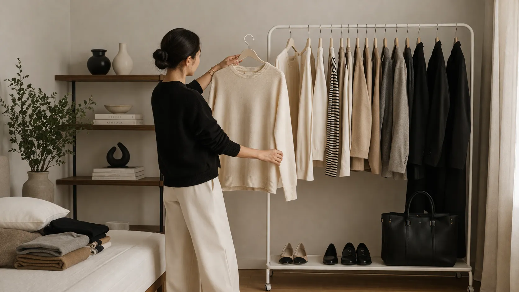 Begin met basics van hoge kwaliteit en bouw je garderobe langzaam op. Vermijd impulsieve aankopen en focus op tijdloze stukken.